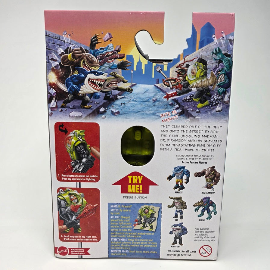 - Surf's up, Fission City! This Dr. Piranoid action figure brings back 30 years of nostalgic fun from the 1990s TV series, Street Sharks. The half-man, half piranha, all-villain character comes with a spring-activated speargun.